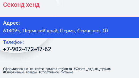 Секонд-хенд по адресу 614095, Пермский край, Пермь, Семченко, 10 в дальнейшем Организация, размещена в следующих категориях: