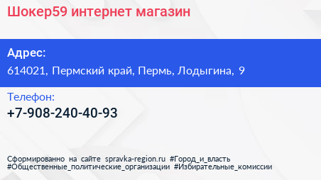 Шокер59, интернет-магазин по адресу 614021, Пермский край, Пермь, Лодыгина, 9 в дальнейшем Организация, размещена в следующих категориях: