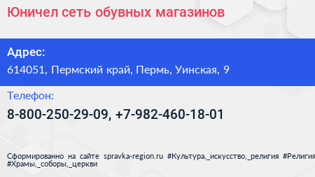 Юничел, сеть обувных магазинов по адресу 614051, Пермский край, Пермь, Уинская, 9 в дальнейшем Организация, размещена в следующих категориях: