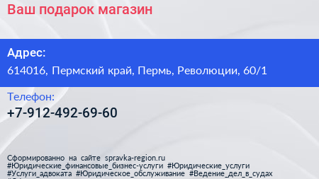 Ваш подарок, магазин по адресу 614016, Пермский край, Пермь, Революции, 60/1 в дальнейшем Организация, размещена в следующих категориях: