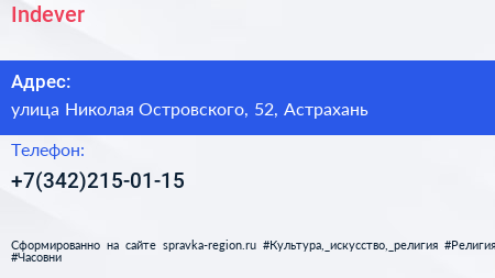 Indever по адресу улица Николая Островского, 52, Астрахань в дальнейшем Организация, размещена в следующих категориях: