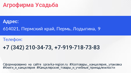 Агрофирма Усадьба по адресу 614021, Пермский край, Пермь, Лодыгина, 9 в дальнейшем Организация, размещена в следующих категориях: