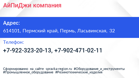 АйПиДжи, компания по адресу 614101, Пермский край, Пермь, Ласьвинская, 32 в дальнейшем Организация, размещена в следующих категориях:
