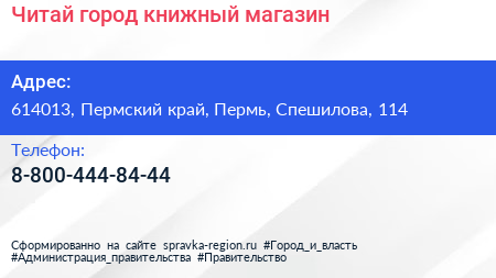 Читай город, книжный магазин по адресу 614013, Пермский край, Пермь, Спешилова, 114 в дальнейшем Организация, размещена в следующих категориях:
