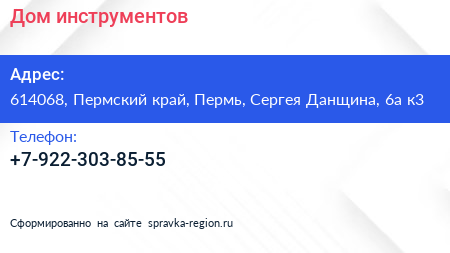 Дом инструментов по адресу 614068, Пермский край, Пермь, Сергея Данщина, 6а к3 в дальнейшем Организация, размещена в следующих категориях: