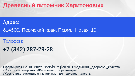 Древесный питомник Харитоновых по адресу 614500, Пермский край, Пермь, Новая, 10 в дальнейшем Организация, размещена в следующих категориях: