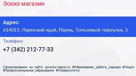 Эскиз, магазин по адресу 614015, Пермский край, Пермь, Тополевый переулок, 5 в дальнейшем Организация, размещена в следующих категориях: