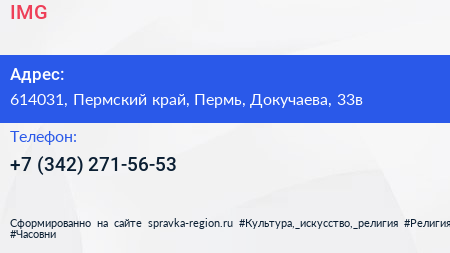 IMG+ по адресу 614031, Пермский край, Пермь, Докучаева, 33в в дальнейшем Организация, размещена в следующих категориях: