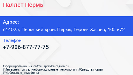 Паллет Пермь по адресу 614025, Пермский край, Пермь, Героев Хасана, 105 к72 в дальнейшем Организация, размещена в следующих категориях: