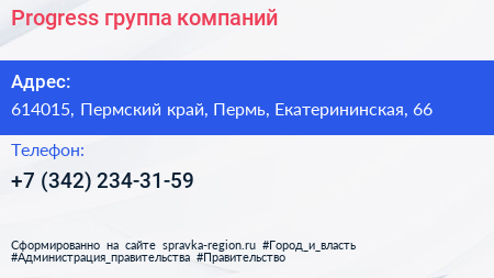 Progress, группа компаний по адресу 614015, Пермский край, Пермь, Екатерининская, 66 в дальнейшем Организация, размещена в следующих категориях: