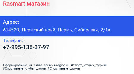Rasmart, магазин по адресу 614520, Пермский край, Пермь, Сибирская, 2/1а в дальнейшем Организация, размещена в следующих категориях: