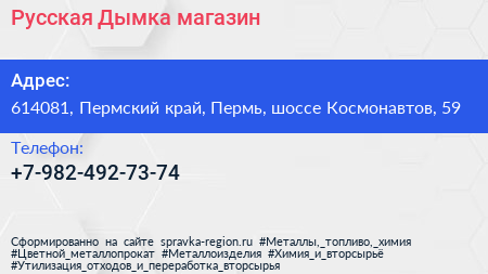 Русская Дымка, магазин по адресу 614081, Пермский край, Пермь, шоссе Космонавтов, 59 в дальнейшем Организация, размещена в следующих категориях: