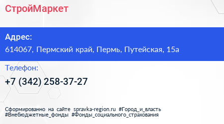 СтройМаркет по адресу 614067, Пермский край, Пермь, Путейская, 15а в дальнейшем Организация, размещена в следующих категориях: