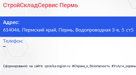 СтройСкладСервис-Пермь по адресу 614046, Пермский край, Пермь, Водопроводная 3-я, 5 ст5 в дальнейшем Организация, размещена в следующих категориях: