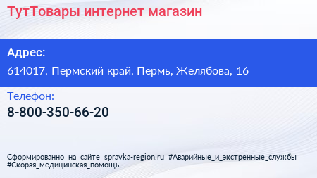 ТутТовары, интернет-магазин по адресу 614017, Пермский край, Пермь, Желябова, 16 в дальнейшем Организация, размещена в следующих категориях: