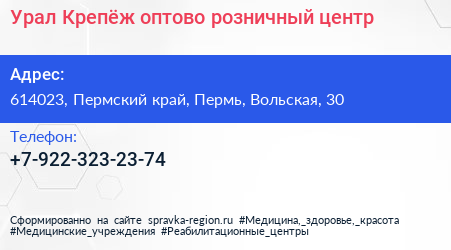 Урал-Крепёж, оптово-розничный центр по адресу 614023, Пермский край, Пермь, Вольская, 30 в дальнейшем Организация, размещена в следующих категориях: