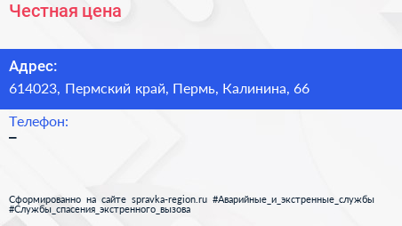 Честная цена по адресу 614023, Пермский край, Пермь, Калинина, 66 в дальнейшем Организация, размещена в следующих категориях: