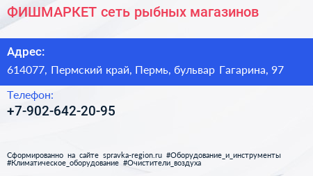 ФИШМАРКЕТ, сеть рыбных магазинов по адресу 614077, Пермский край, Пермь, бульвар Гагарина, 97 в дальнейшем Организация, размещена в следующих категориях: