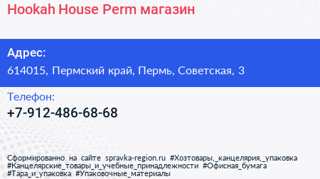 Hookah House Perm, магазин по адресу 614015, Пермский край, Пермь, Советская, 3 в дальнейшем Организация, размещена в следующих категориях: