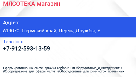 МЯСОТЕКА, магазин по адресу 614070, Пермский край, Пермь, Дружбы, 6 в дальнейшем Организация, размещена в следующих категориях: