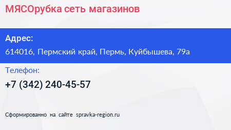 МЯСОрубка, сеть магазинов по адресу 614016, Пермский край, Пермь, Куйбышева, 79а в дальнейшем Организация, размещена в следующих категориях: