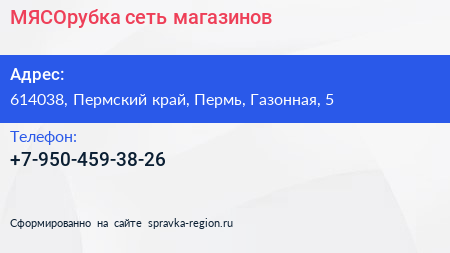 МЯСОрубка, сеть магазинов по адресу 614038, Пермский край, Пермь, Газонная, 5 в дальнейшем Организация, размещена в следующих категориях: