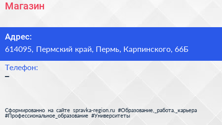 Магазин по адресу 614095, Пермский край, Пермь, Карпинского, 66Б в дальнейшем Организация, размещена в следующих категориях: