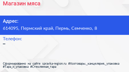 Магазин мяса по адресу 614095, Пермский край, Пермь, Семченко, 8 в дальнейшем Организация, размещена в следующих категориях: