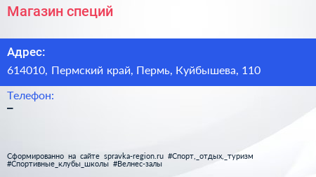 Магазин специй по адресу 614010, Пермский край, Пермь, Куйбышева, 110 в дальнейшем Организация, размещена в следующих категориях: