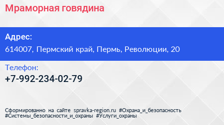 Мраморная говядина по адресу 614007, Пермский край, Пермь, Революции, 20 в дальнейшем Организация, размещена в следующих категориях: