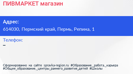 ПИВМАРКЕТ, магазин по адресу 614030, Пермский край, Пермь, Репина, 1 в дальнейшем Организация, размещена в следующих категориях: