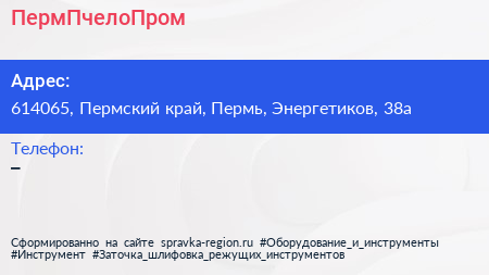 ПермПчелоПром по адресу 614065, Пермский край, Пермь, Энергетиков, 38а в дальнейшем Организация, размещена в следующих категориях: