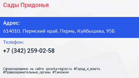 Сады Придонья по адресу 614010, Пермский край, Пермь, Куйбышева, 95Б в дальнейшем Организация, размещена в следующих категориях: