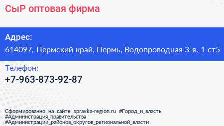 СыР, оптовая фирма по адресу 614097, Пермский край, Пермь, Водопроводная 3-я, 1 ст5 в дальнейшем Организация, размещена в следующих категориях: