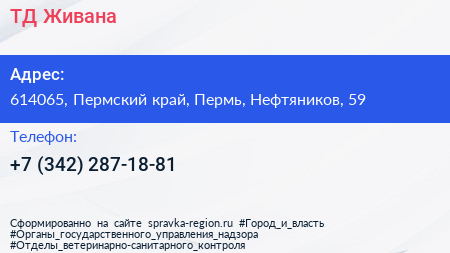 ТД Живана по адресу 614065, Пермский край, Пермь, Нефтяников, 59 в дальнейшем Организация, размещена в следующих категориях: