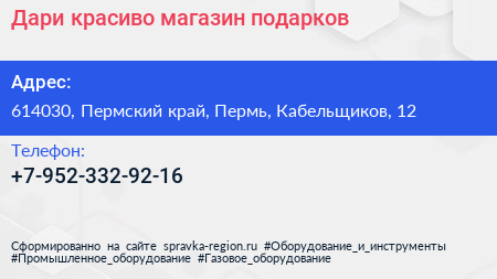 Дари красиво, магазин подарков по адресу 614030, Пермский край, Пермь, Кабельщиков, 12 в дальнейшем Организация, размещена в следующих категориях: