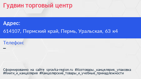 Гудвин, торговый центр по адресу 614107, Пермский край, Пермь, Уральская, 63 к4 в дальнейшем Организация, размещена в следующих категориях:
