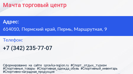 Мачта, торговый центр по адресу 614010, Пермский край, Пермь, Маршрутная, 9 в дальнейшем Организация, размещена в следующих категориях: