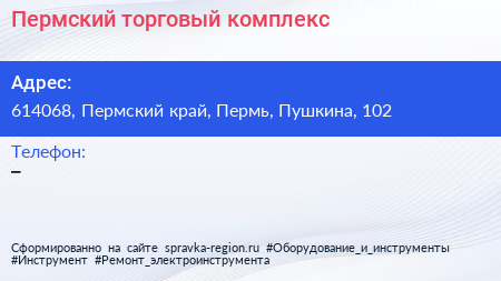Пермский, торговый комплекс по адресу 614068, Пермский край, Пермь, Пушкина, 102 в дальнейшем Организация, размещена в следующих категориях:
