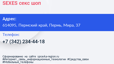 SEXES, секс-шоп по адресу 614095, Пермский край, Пермь, Мира, 37 в дальнейшем Организация, размещена в следующих категориях: