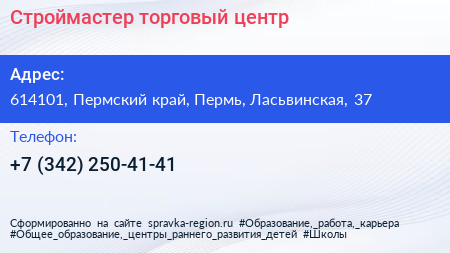 Строймастер, торговый центр по адресу 614101, Пермский край, Пермь, Ласьвинская, 37 в дальнейшем Организация, размещена в следующих категориях: