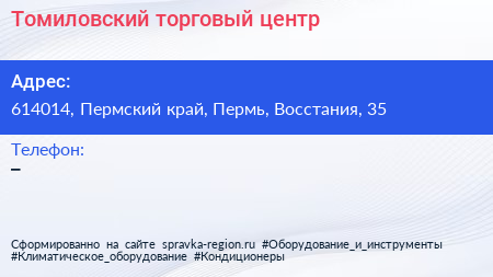 Томиловский, торговый центр по адресу 614014, Пермский край, Пермь, Восстания, 35 в дальнейшем Организация, размещена в следующих категориях: