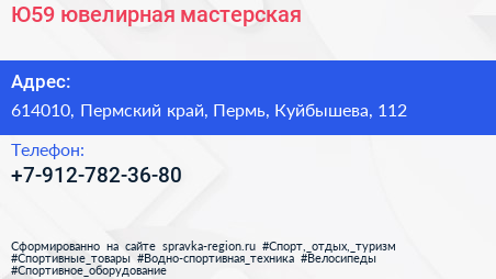 Ю59, ювелирная мастерская по адресу 614010, Пермский край, Пермь, Куйбышева, 112 в дальнейшем Организация, размещена в следующих категориях: