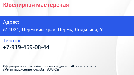 Ювелирная мастерская по адресу 614021, Пермский край, Пермь, Лодыгина, 9 в дальнейшем Организация, размещена в следующих категориях: