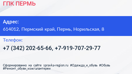ГПК-ПЕРМЬ по адресу 614012, Пермский край, Пермь, Норильская, 8 в дальнейшем Организация, размещена в следующих категориях: