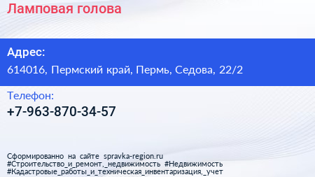 Ламповая голова по адресу 614016, Пермский край, Пермь, Седова, 22/2 в дальнейшем Организация, размещена в следующих категориях:
