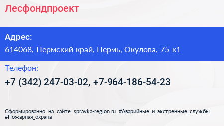 Лесфондпроект по адресу 614068, Пермский край, Пермь, Окулова, 75 к1 в дальнейшем Организация, размещена в следующих категориях: