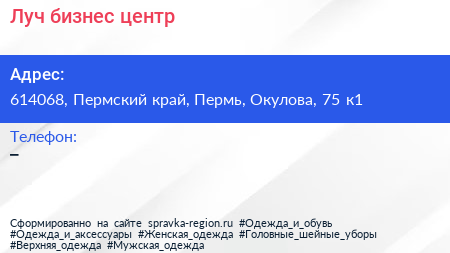 Луч, бизнес-центр по адресу 614068, Пермский край, Пермь, Окулова, 75 к1 в дальнейшем Организация, размещена в следующих категориях: