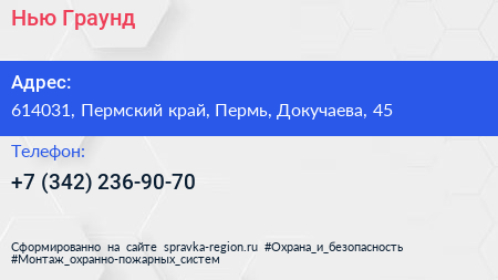 Нью Граунд по адресу 614031, Пермский край, Пермь, Докучаева, 45 в дальнейшем Организация, размещена в следующих категориях: