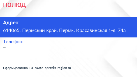 ПОЛЮД по адресу 614065, Пермский край, Пермь, Красавинская 1-я, 74а в дальнейшем Организация, размещена в следующих категориях: